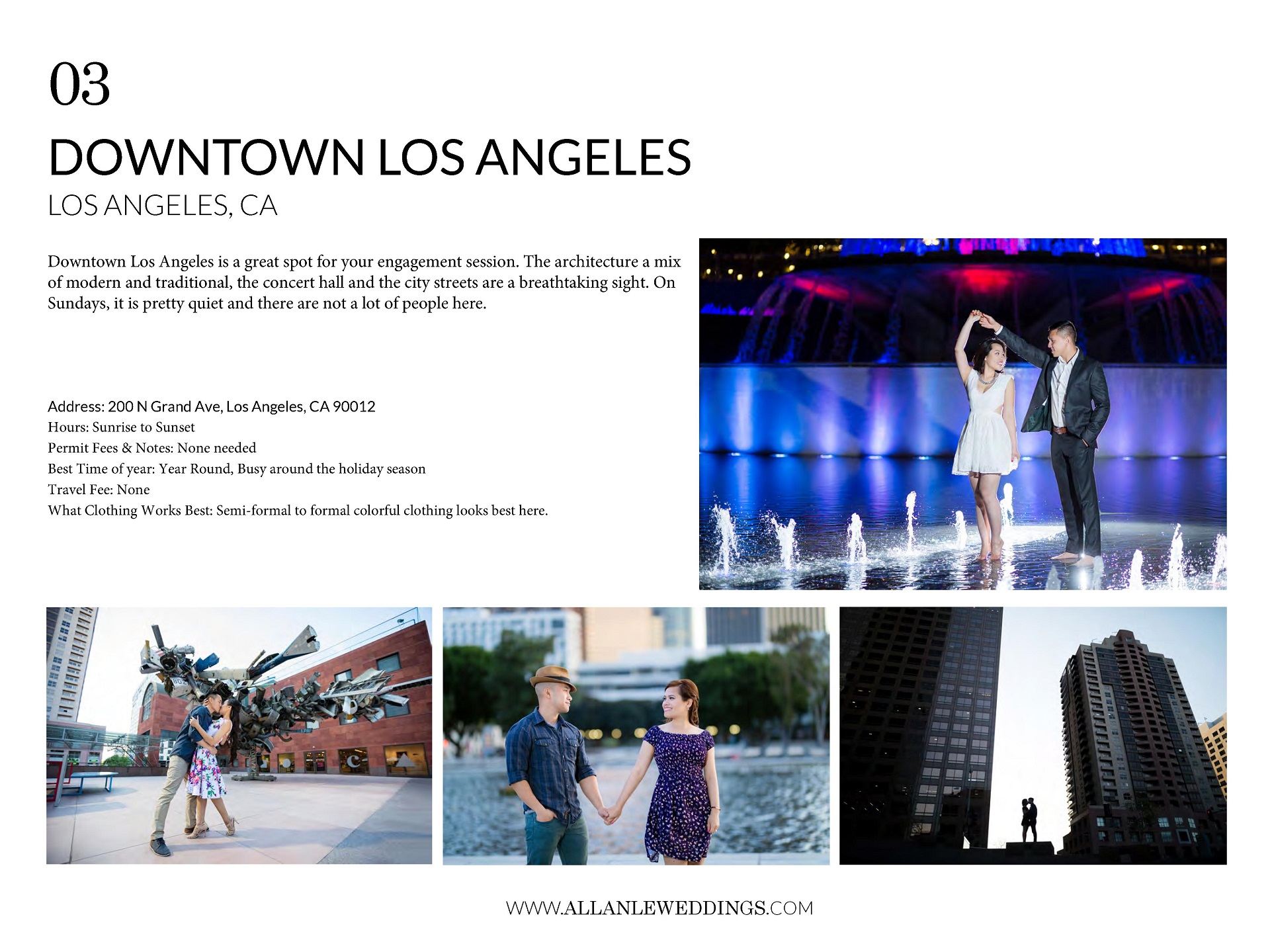 Keep in mind that some of the locations listed below might require a permit to photograph on the premises and some locations I don’t photograph at during the summer because of crowds or heat.